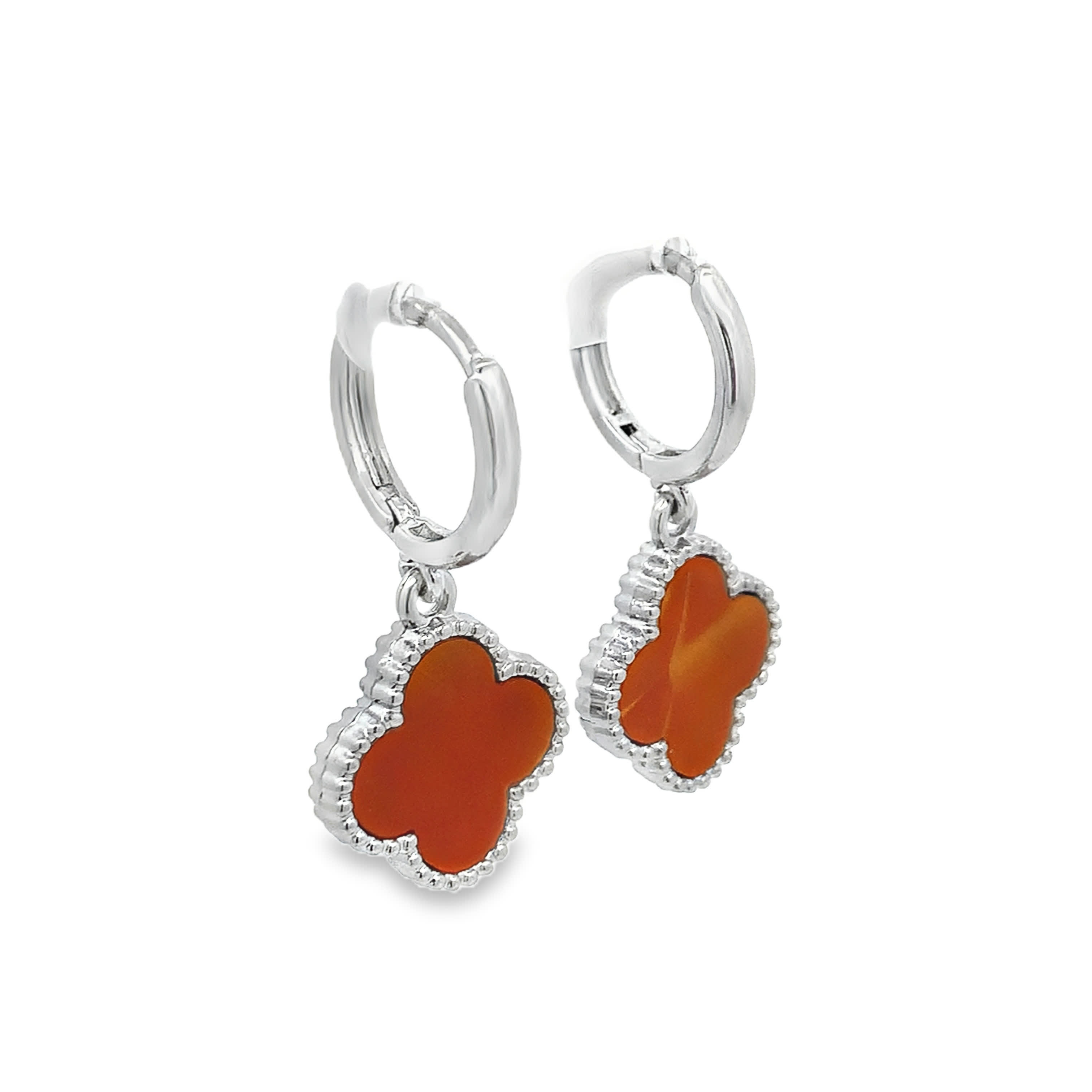 Posrebrzane kolczyki wiszące barokowe z kaboszonem kamienia agatu żółtopomarańczowego w polerowanym wykończeniu