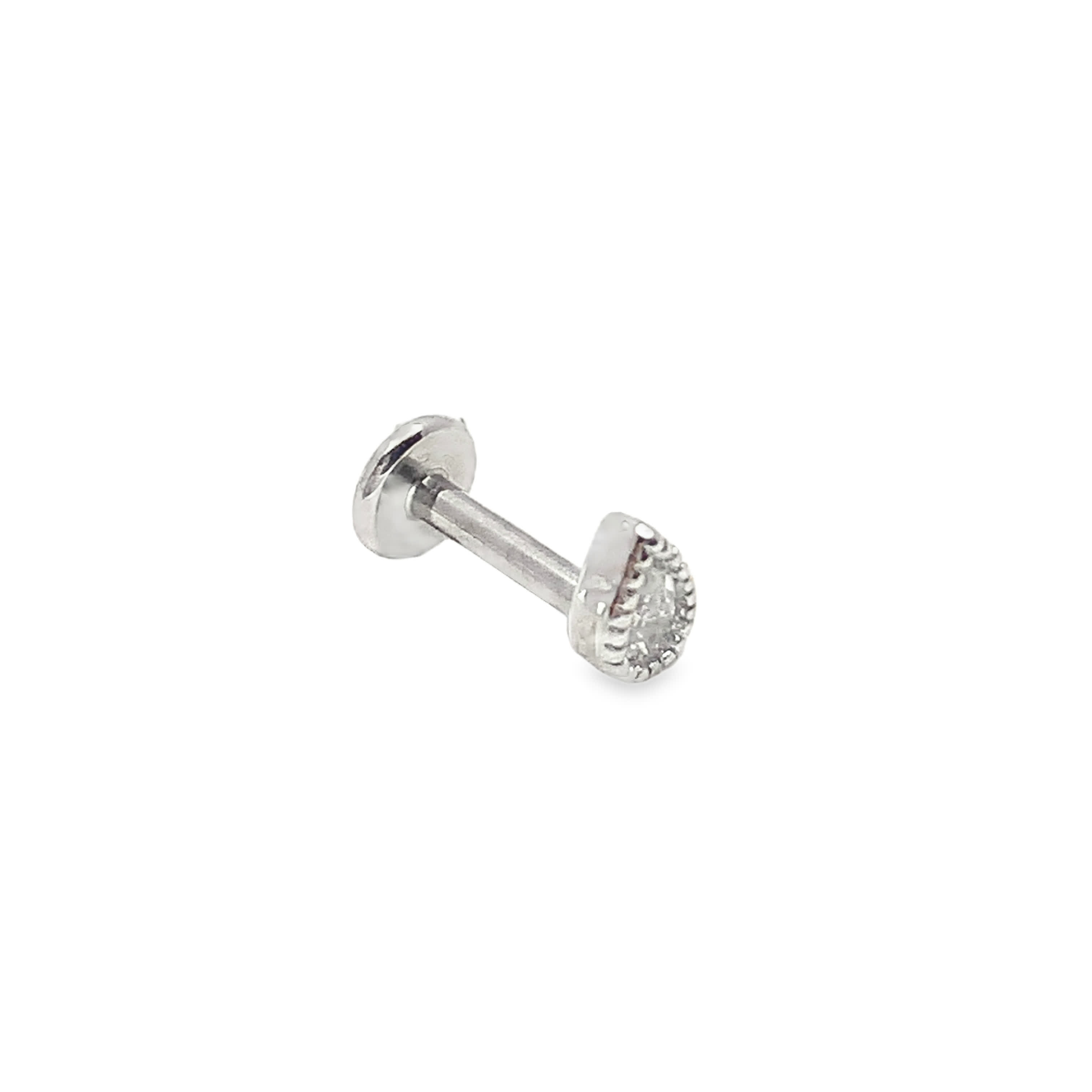 Posrebrzany labret z kamieniem pear brilliant i koralikową łezką