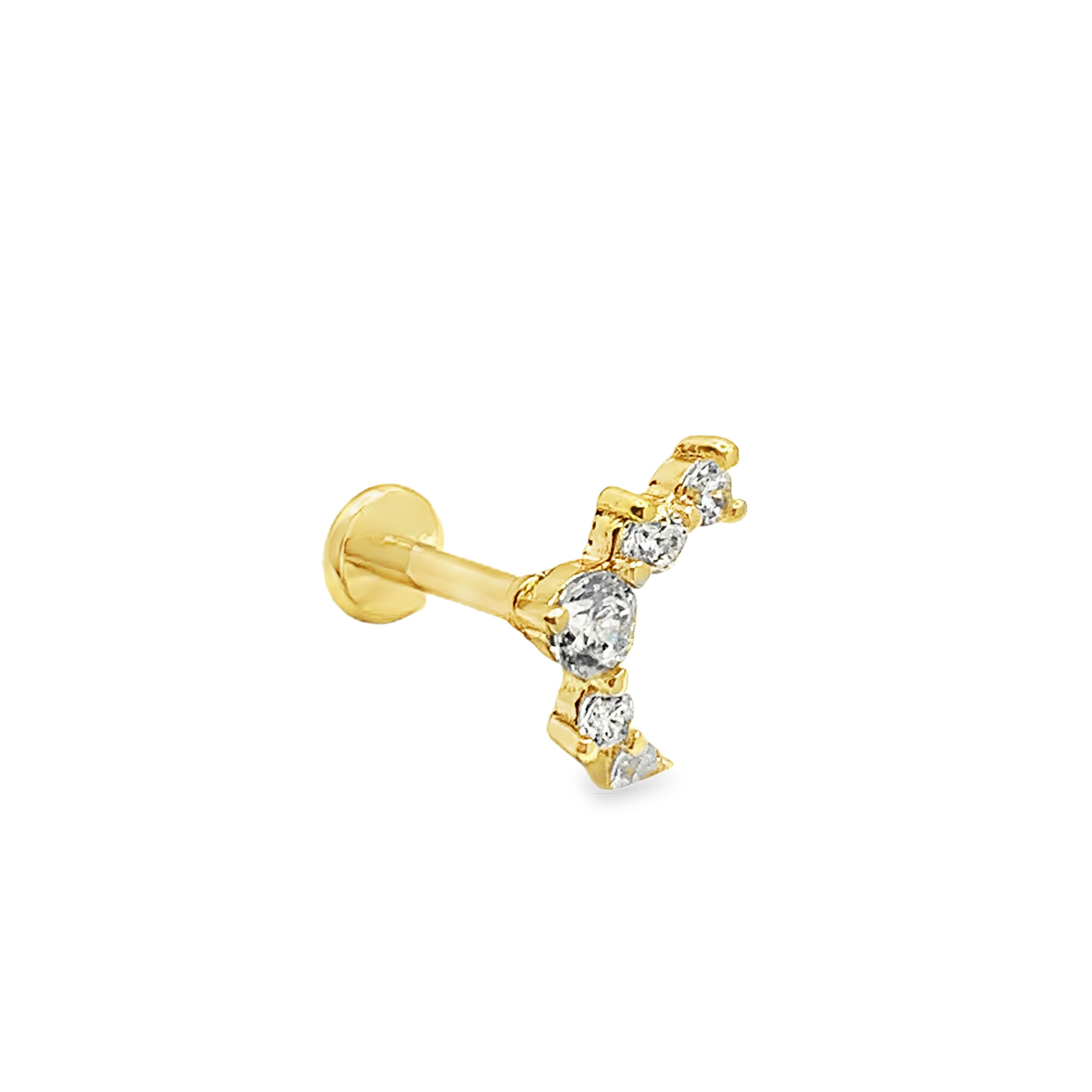Pozłacany kolczyk curved V-cluster z kamieniem okrągłym w szlifie brylantowym