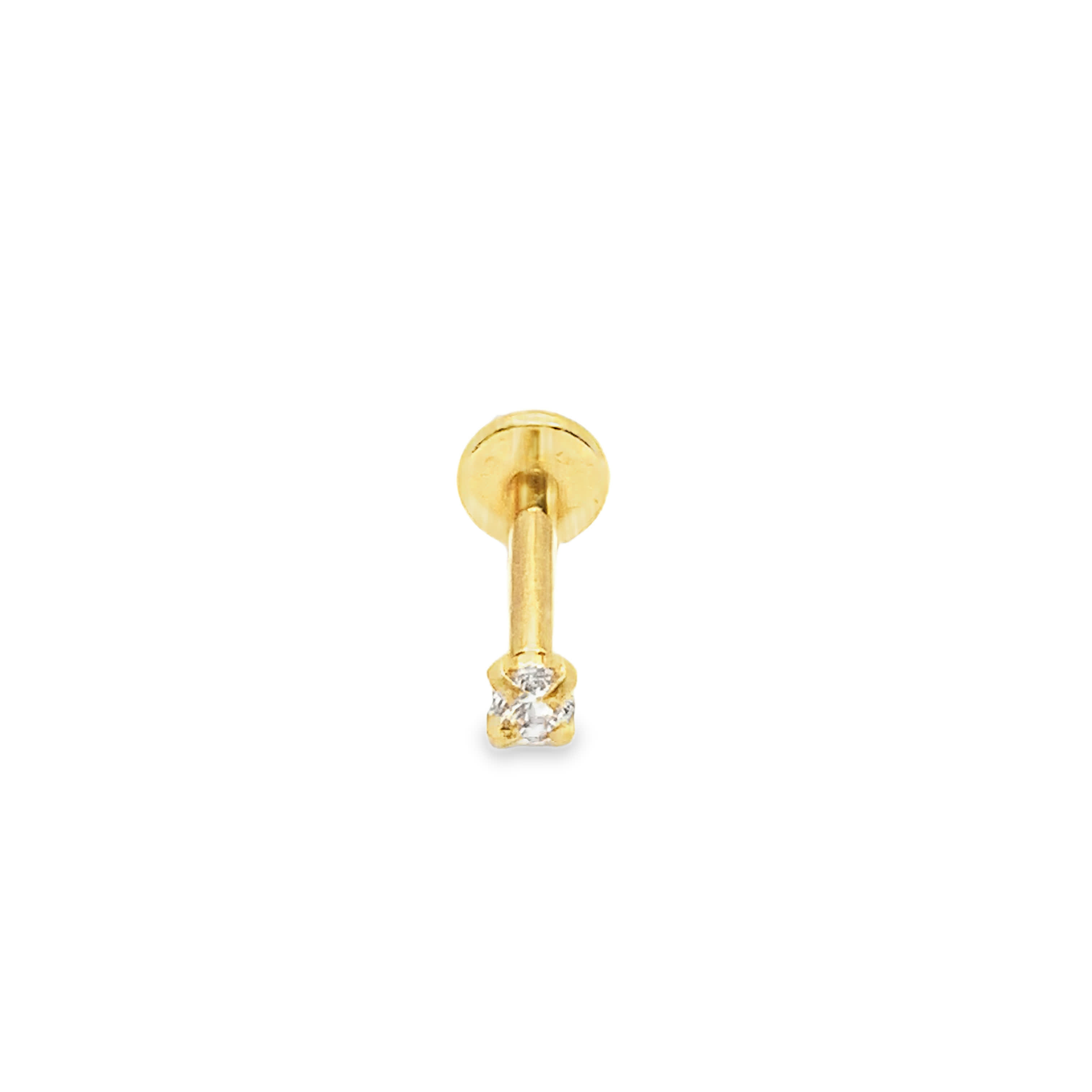 Piercing pozłacany labret flat-back z cyrkonią w szlifie okrągłym