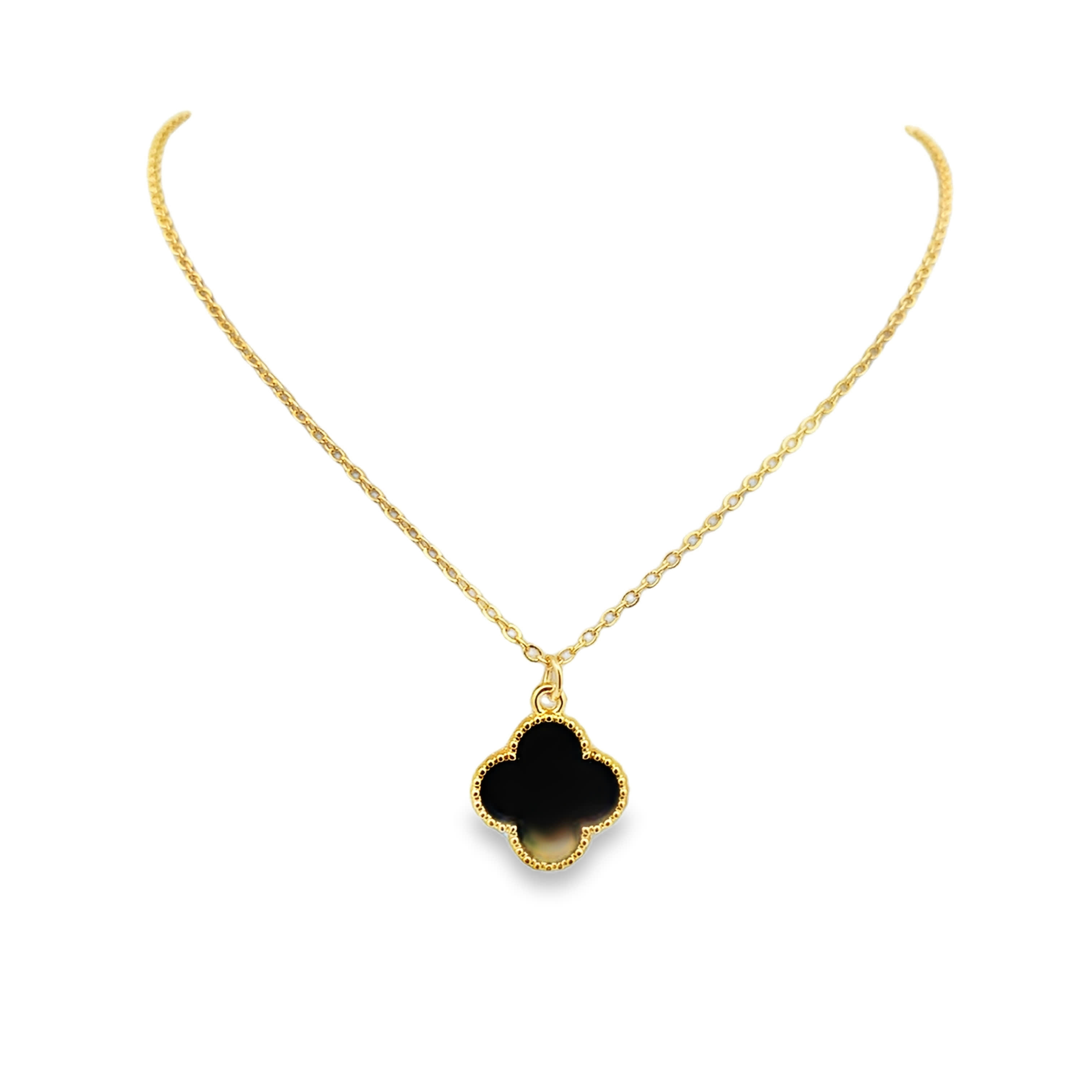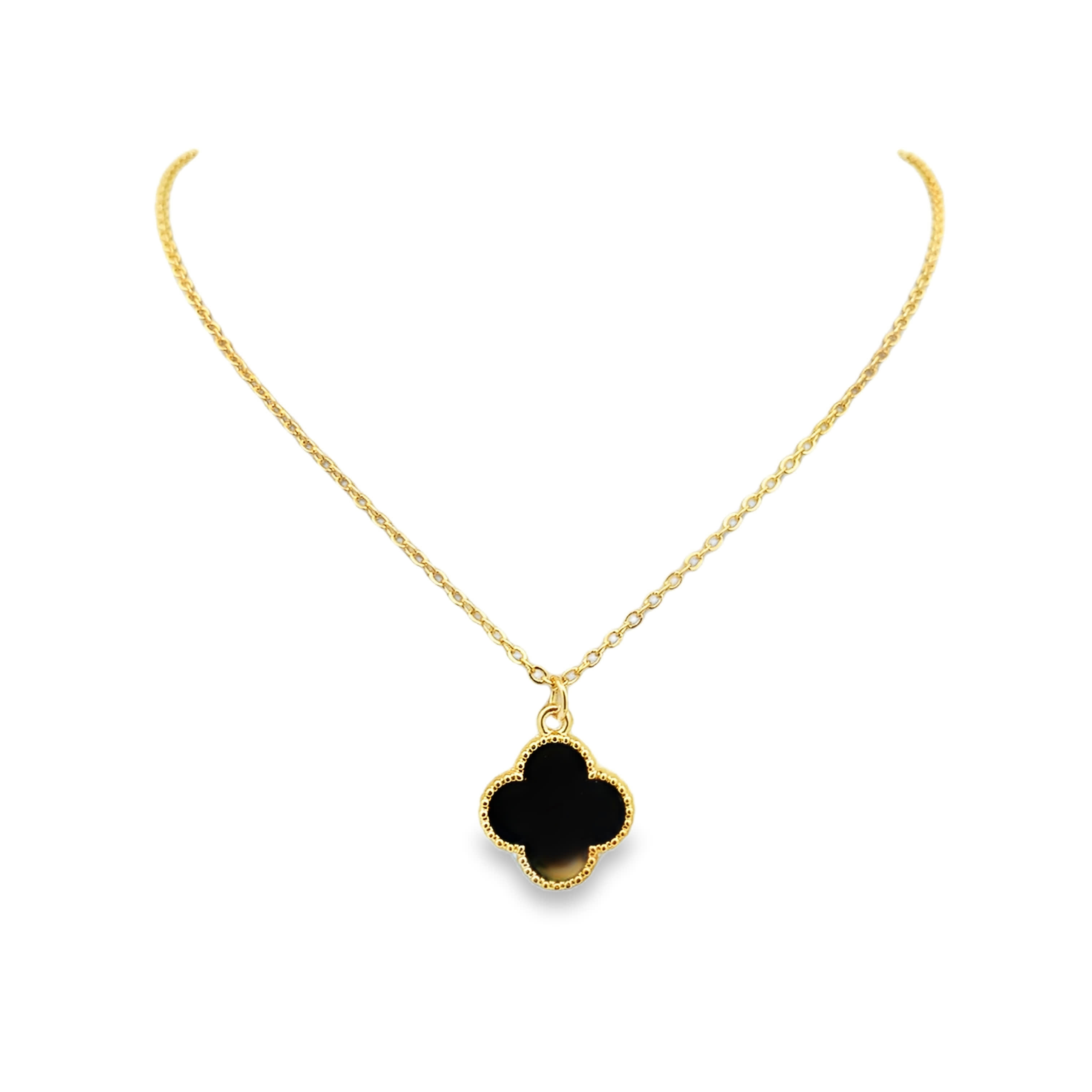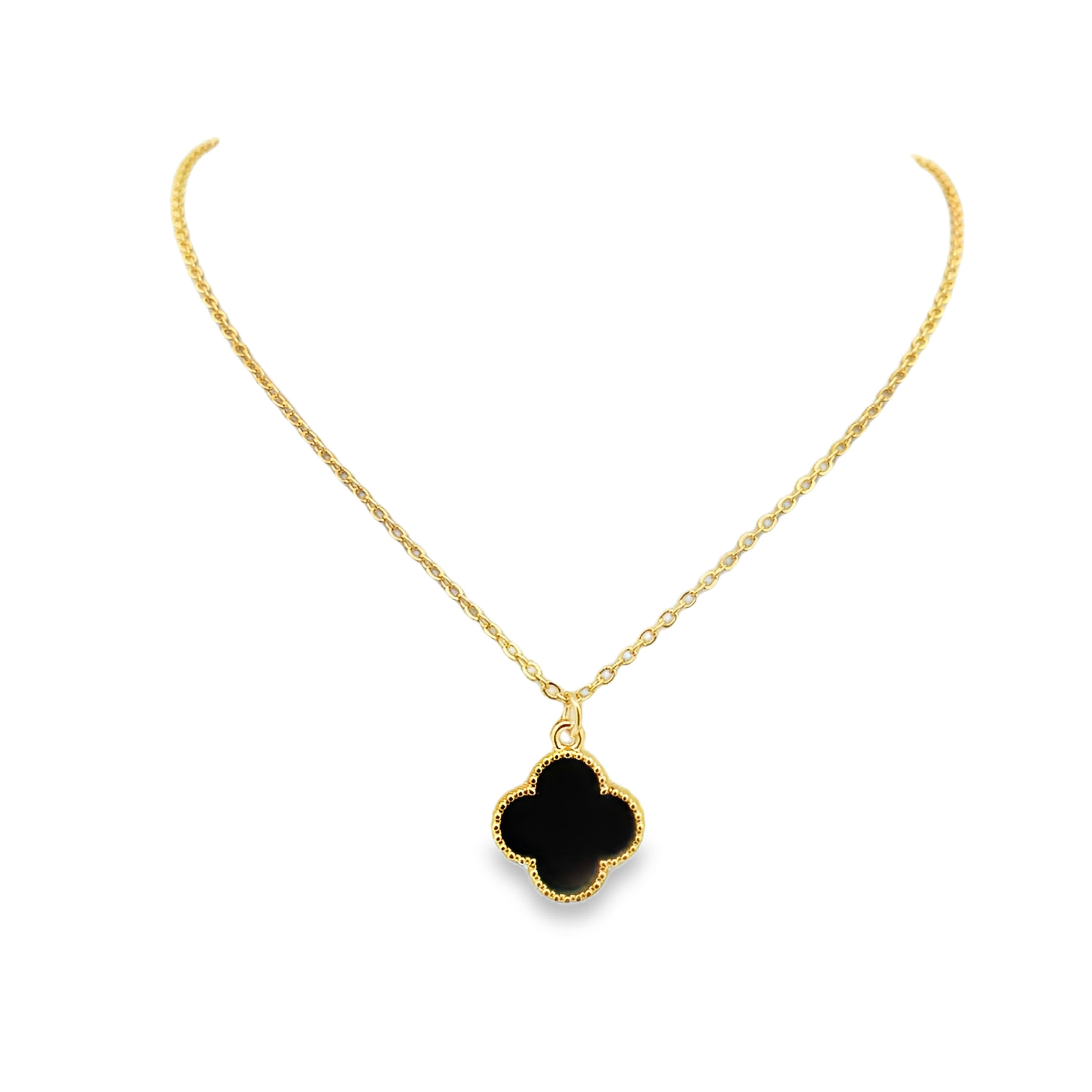 Pozłacany naszyjnik charms czterolistny z kamieniem czarnego onyksu