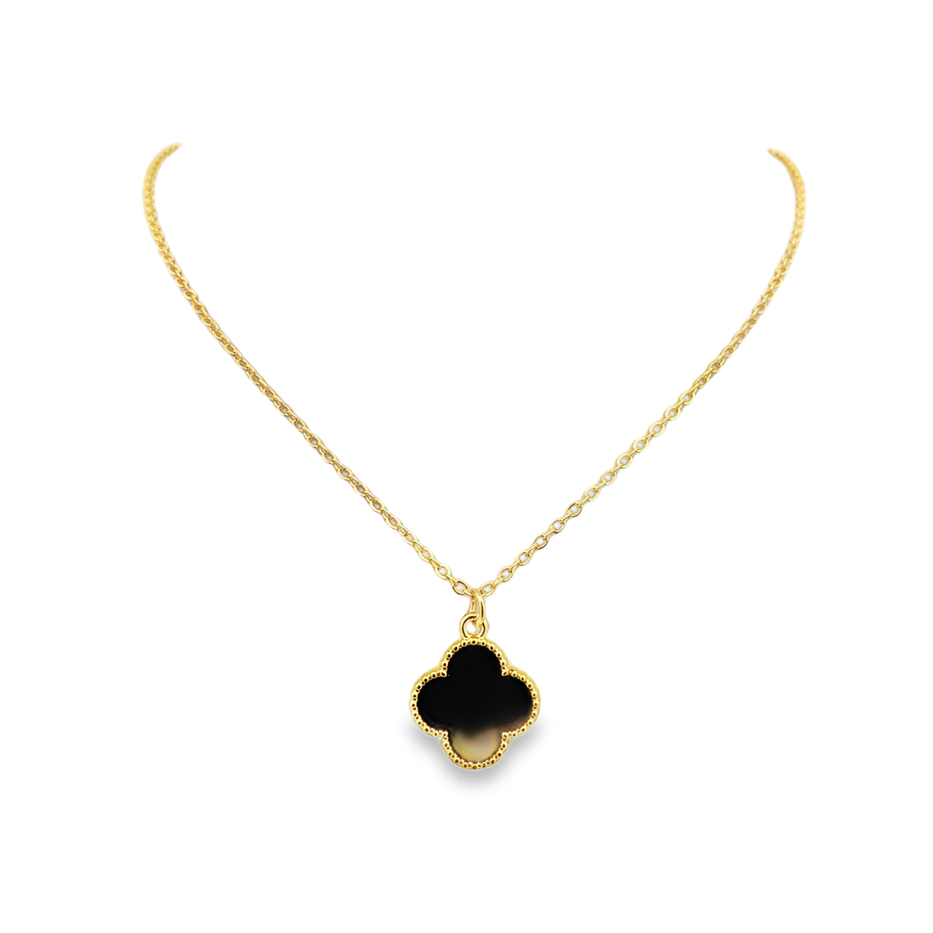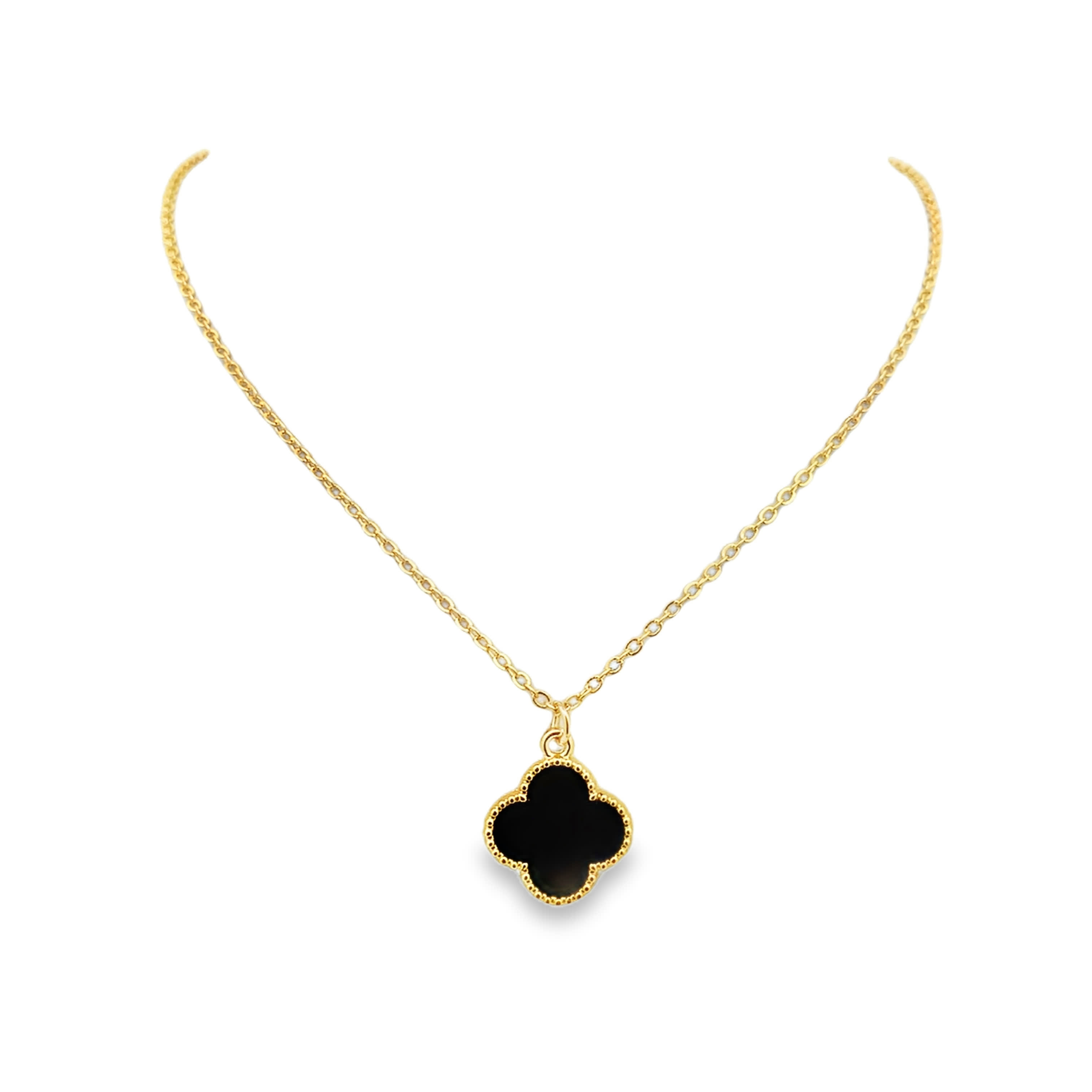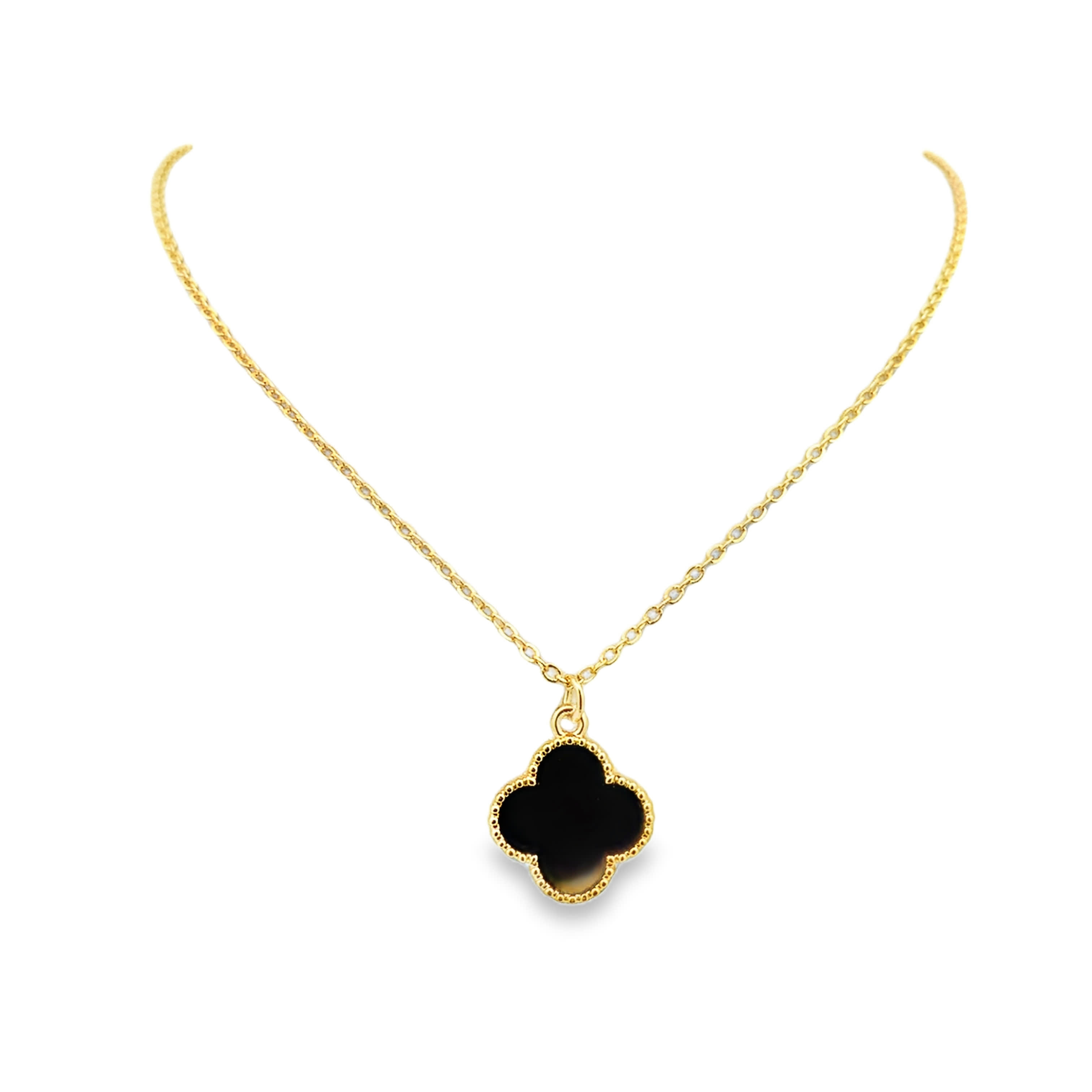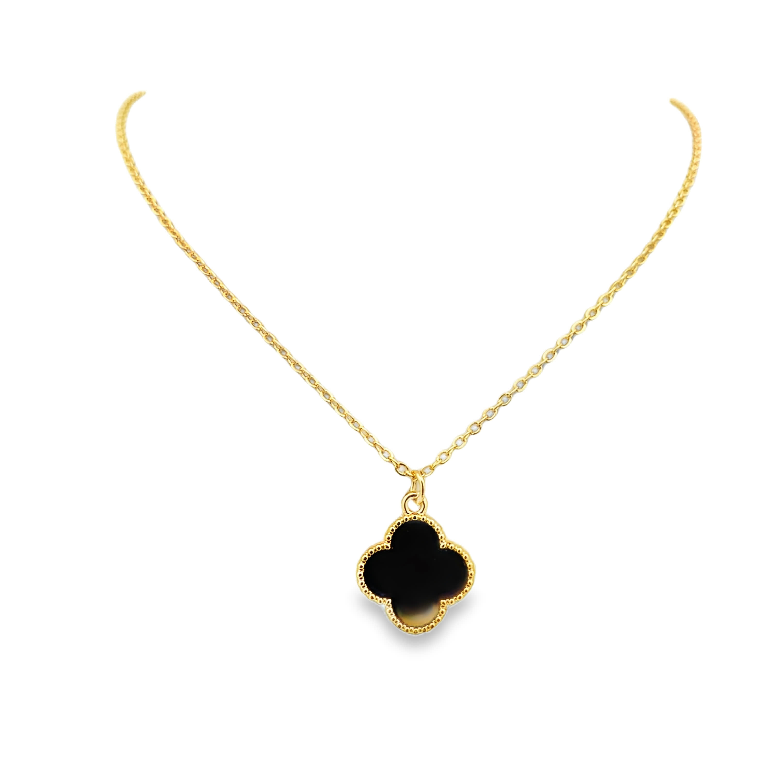 Pozłacany naszyjnik charms czterolistny z kamieniem czarnego onyksu