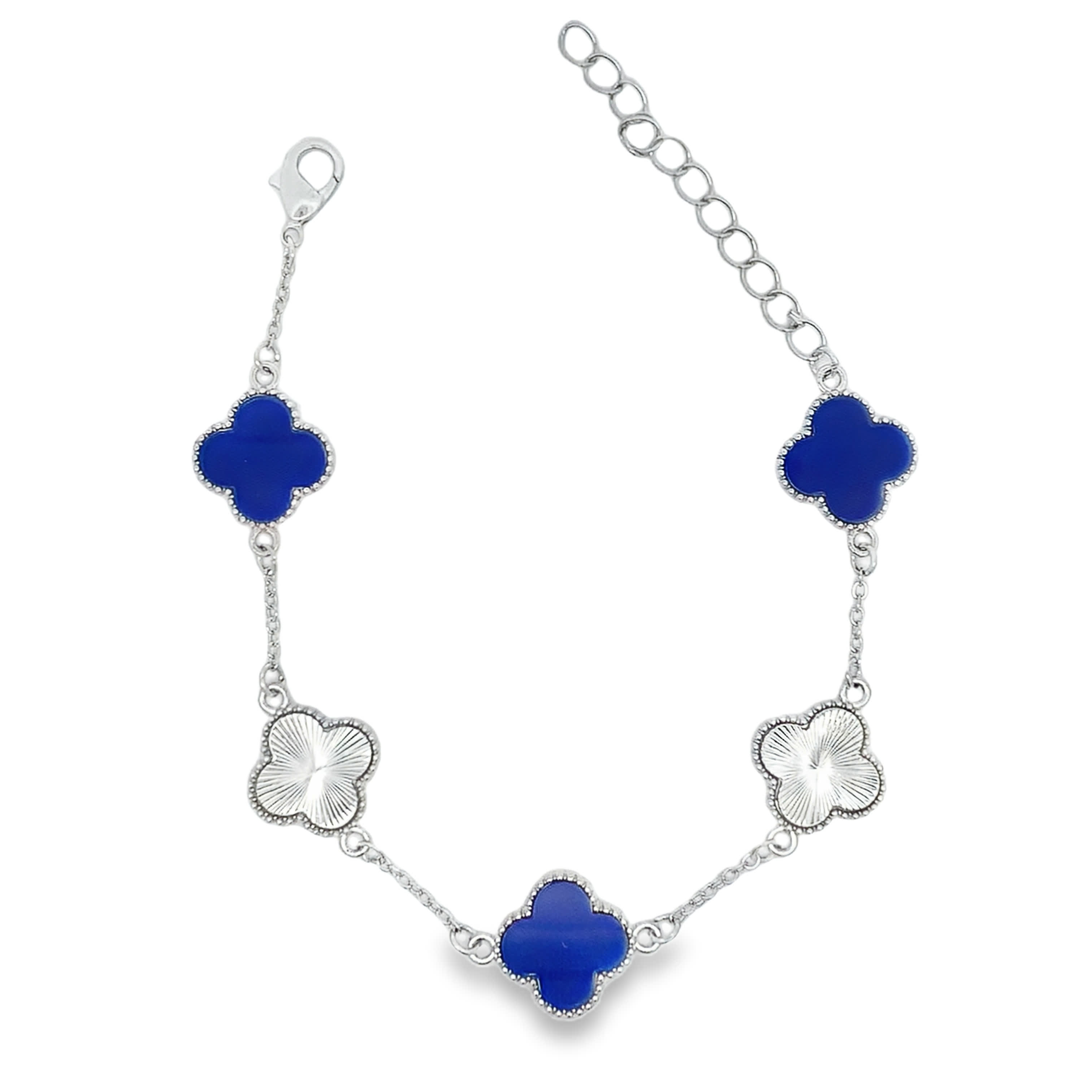 Posrebrzana bransoletka łańcuszkowa koniczyna z naprzemiennym kamieniem lapis lazuli i giloszem